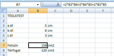 3., Készíts számolótáblát matematika órára, amely kiszámolja a téglatest a, b és c élhosszának adataiból a téglatest felszínét és térfogatát!