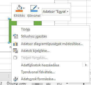 Ha a diagram területén jobb egérgombbal kattintunk, a megjelenő helyi menüben formázási lehetőségeket választhatunk.